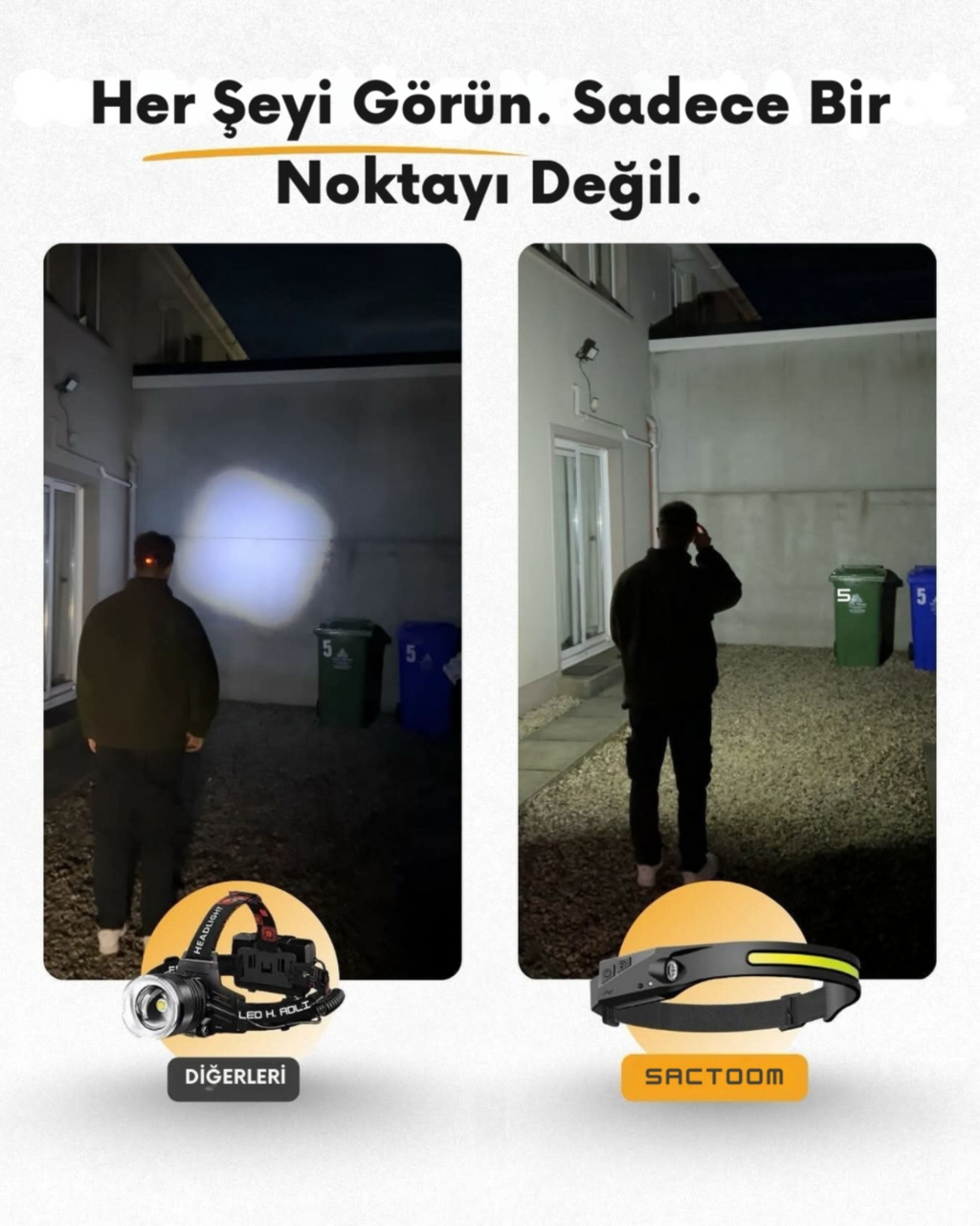 Başlık lambamız akıllı indüksiyon sensörü ile donatılmıştır. Bu sensör, elinizi lambaya yaklaştırdığınızda otomatik olarak açılır ve uzaklaştırdığınızda kapatır. Bu özellik, elleriniz meşgul olduğunda veya ıslak olduğunda çok kullanışlıdır. Sensörü devre dışı bırakmak istiyorsanız, ön taraftaki düğmeyi kullanarak manuel moda geçebilirsiniz.